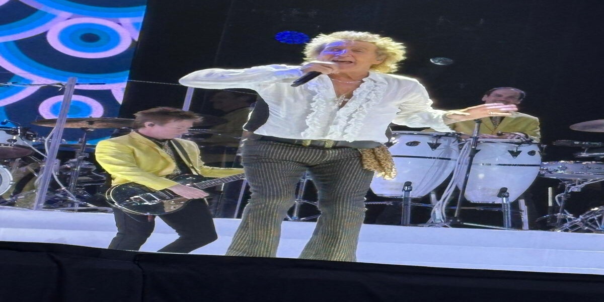 Signierte Fußbälle leiten dann zu „Da Ya Think I'm Sexy“ die Schlussphase des Abends ein, mit „Some Guys Have All The Luck“ und „Hot Legs“ drückt der bald 81 Jahre alte Sänger nochmal auf die Tube, ehe es dann mit Kapitänsmütze auf dem Kopf zum großen Finale und „Sailing“ kommt. Weil die Fans auch danach immer noch nicht genug bekomnmen können, hebt sich der Vorhang noch einmal und Stewart lässt – untermalt mit von der Decke regnenden Luftballons – den „Love Train“ als Zugabe über die Bühne rasen.